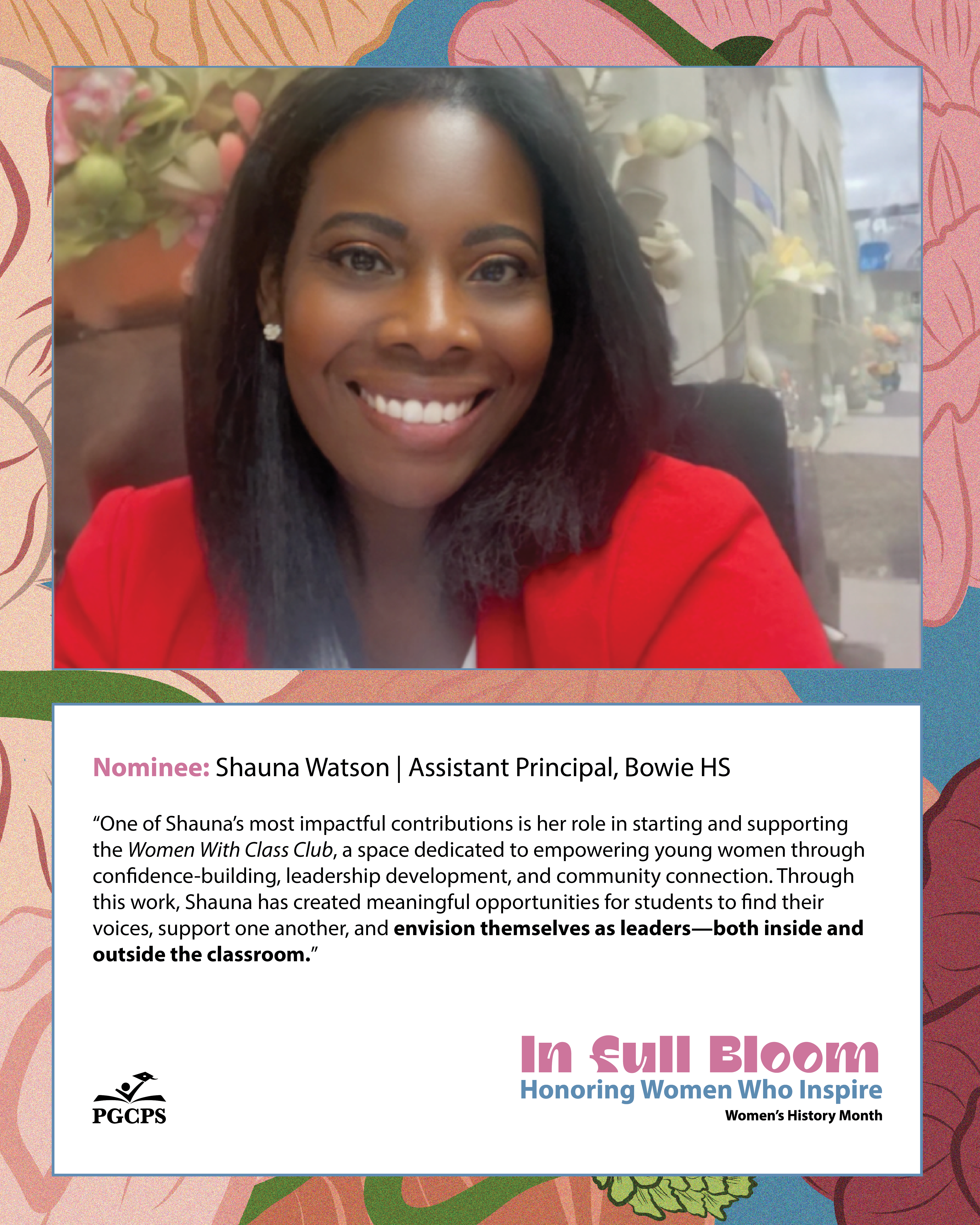 “One of Shauna’s most impactful contributions is her role in starting and supporting the Women With Class Club, a space dedicated to empowering young women through confidence-building, leadership development, and community connection. Through this work, Shauna has created meaningful opportunities for students to find their voices, support one another, and envision themselves as leaders—both inside and outside the classroom.”